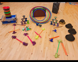 Skills we teach include ball, club and hat juggling, diabolo & devilstick, plastic plate spinning, tight wire walking, hula hoops & more